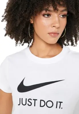 Универсальная футболка на каждый день Nike Sportwear JDI для девушек с активным образом жизни. Современные материалы дарят комфорт и ощущение легкости в течение всего дня. Фирменный дизайн футболки легко узнаваем и остается актуальным каждый сезон. Белый цвет в сочетании с графикой «Just Do It» создает Ваш собственный спортивный стиль. Футболка подойдет как для занятий спортом, так и повседневного использования. Материал джерси на основе хлопка приятно прилегает к телу и обладает высокой износостойкостью. Ткань не требует частого ухода, не растягивается и не скатывается со временем. Круглый вырез и плоские швы не доставляют дискомфорта во время движений и не раздражают кожу. Стандартный крой позволяет активно двигаться без дискомфорта. Оптимальная длина футболки и рукавов не дает ей задираться при движениях руками или наклонах.Особенности и преимущества: